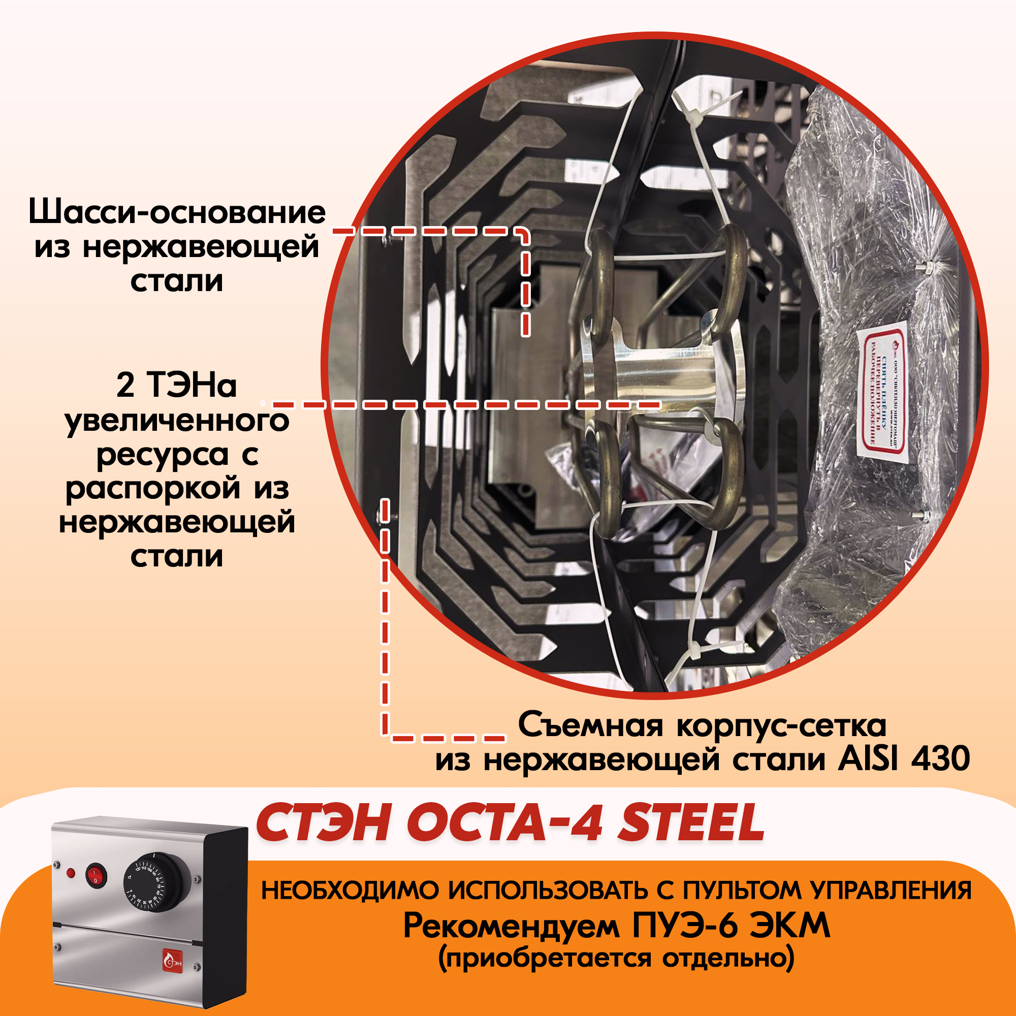 Электрическая каменка СТЭН ЭКМ 4 Octa steel в Нижнем Тагиле | Доставка по России