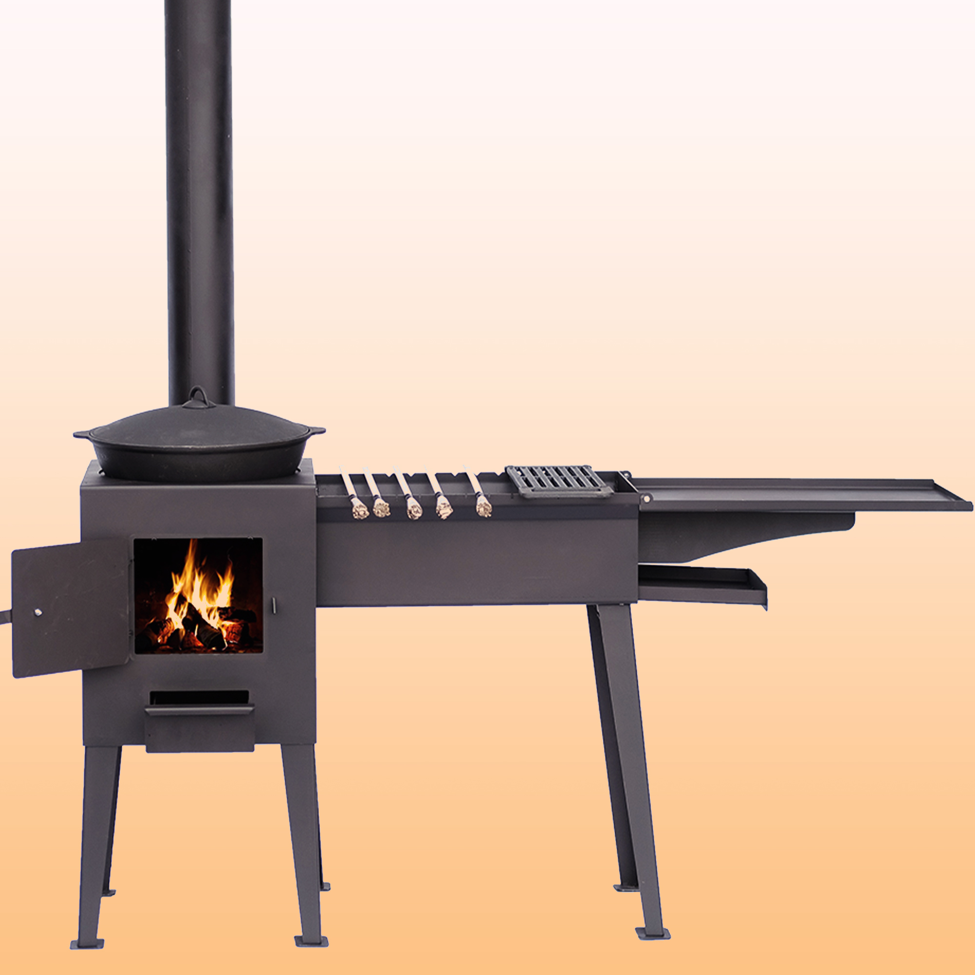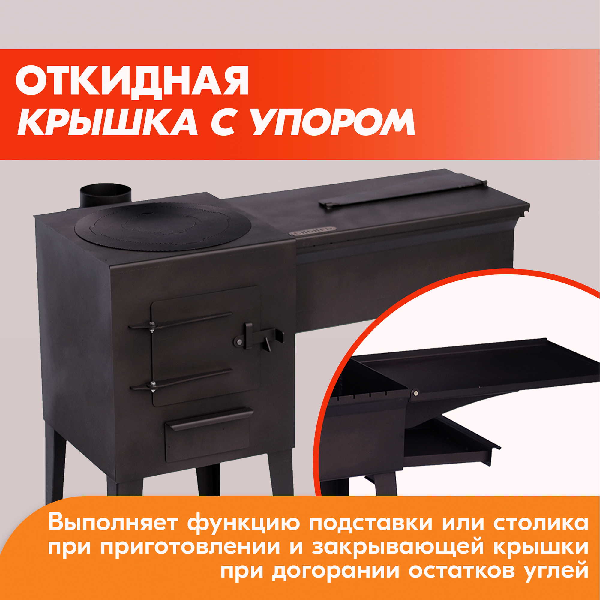 Ножки печи оснащены специальными упорами, создающими необходимую устойчивость на любой поверхности.