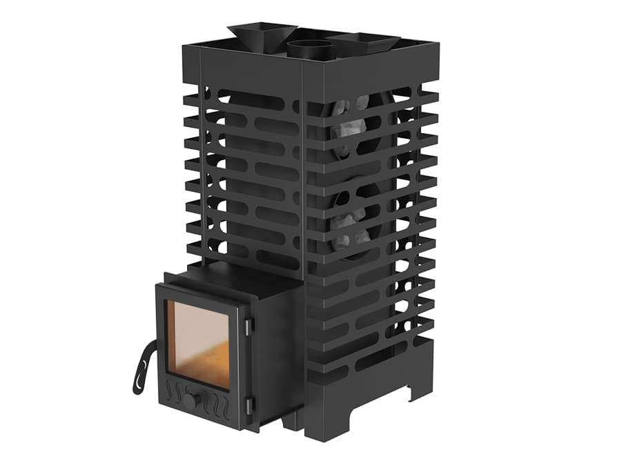 Стальной кожух-конвектор значительно ускоряет нагревание воздуха в парилке за счет образуемого им мощного воздушного потока.