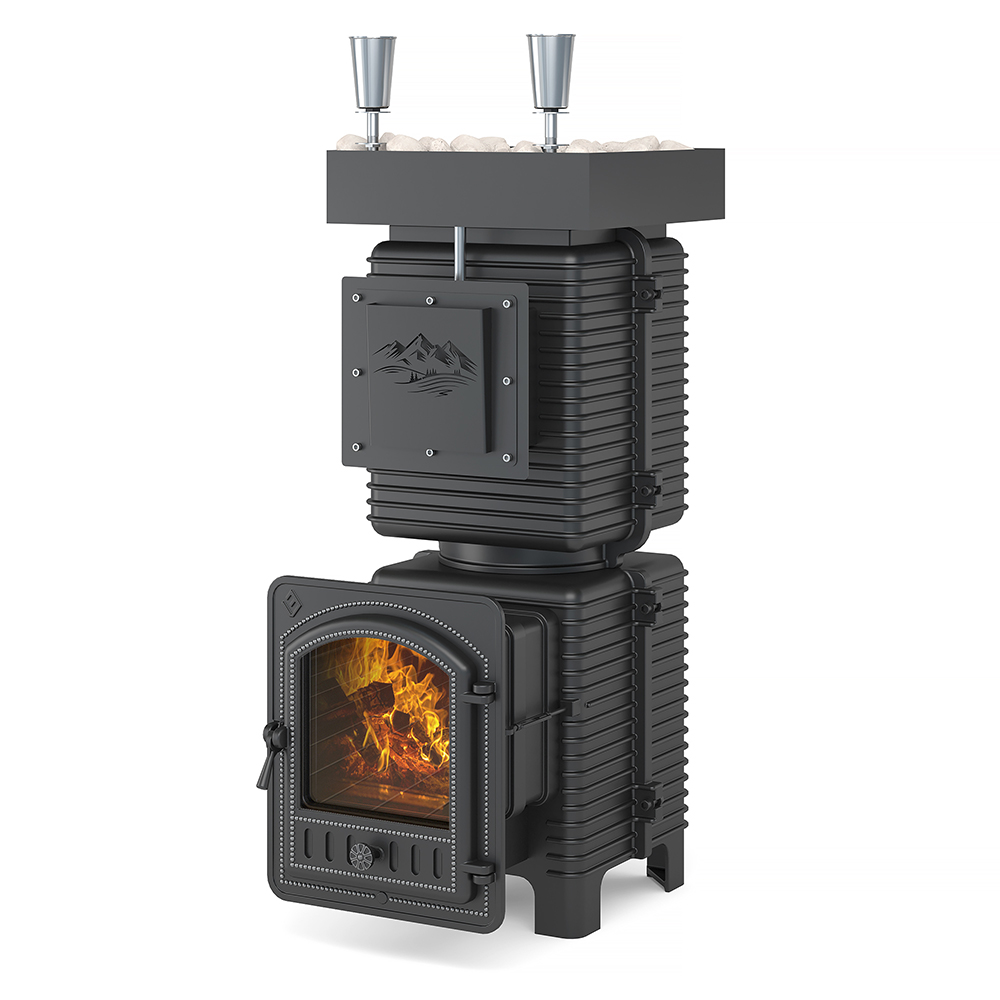 Закрытая каменка из чугуна толщиной 10 миллиметров сверху и снизу имеет закруглённую конструкцию. Каменка находится на месте пламегасителя. Закрытая каменка рассчитана на размещение 60 килограммов камней.  В качестве открытой каменки выше основной части печи размещён стальной поддон для камней, куда умещается более 60кг камней. Совокупный вес печи и камней составляет более 400 кг.