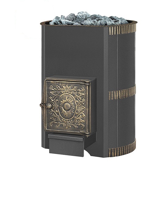 Дровяная печь для бани Лава современного дизайна, предназначена для отопления парильных помещений, получения пара, а также нагрева воды. Банная печь Лава ВЧ укомплектована топочной глухой чугунной дверцей. Дровяная печь Везувий Лава 22 ВЧ рассчитана на объем парильного помещения 12-24 м3. В конструкции данной печи предусмотрен топочный тоннель длиной 250 мм, при помощи которого печь топится из соседнего помещения, смежного с парильным. Объемная, вентилируемая каменка позволяет максимально быстро нагреть камни с четырёх сторон в кратчайшие сроки. Большая масса камней (до 40 кг!), закладываемая в каменку печи, нагревается до 350 °С, что позволяет обеспечить стабильность температуры в парилке и является мощным парогенератором. Печи из модельного ряда Лава обладают способностью быстрого и равномерного прогрева банного помещения, благодаря наружному кожуху-конвектору, который при нагреве образует мощный конвекционный поток.