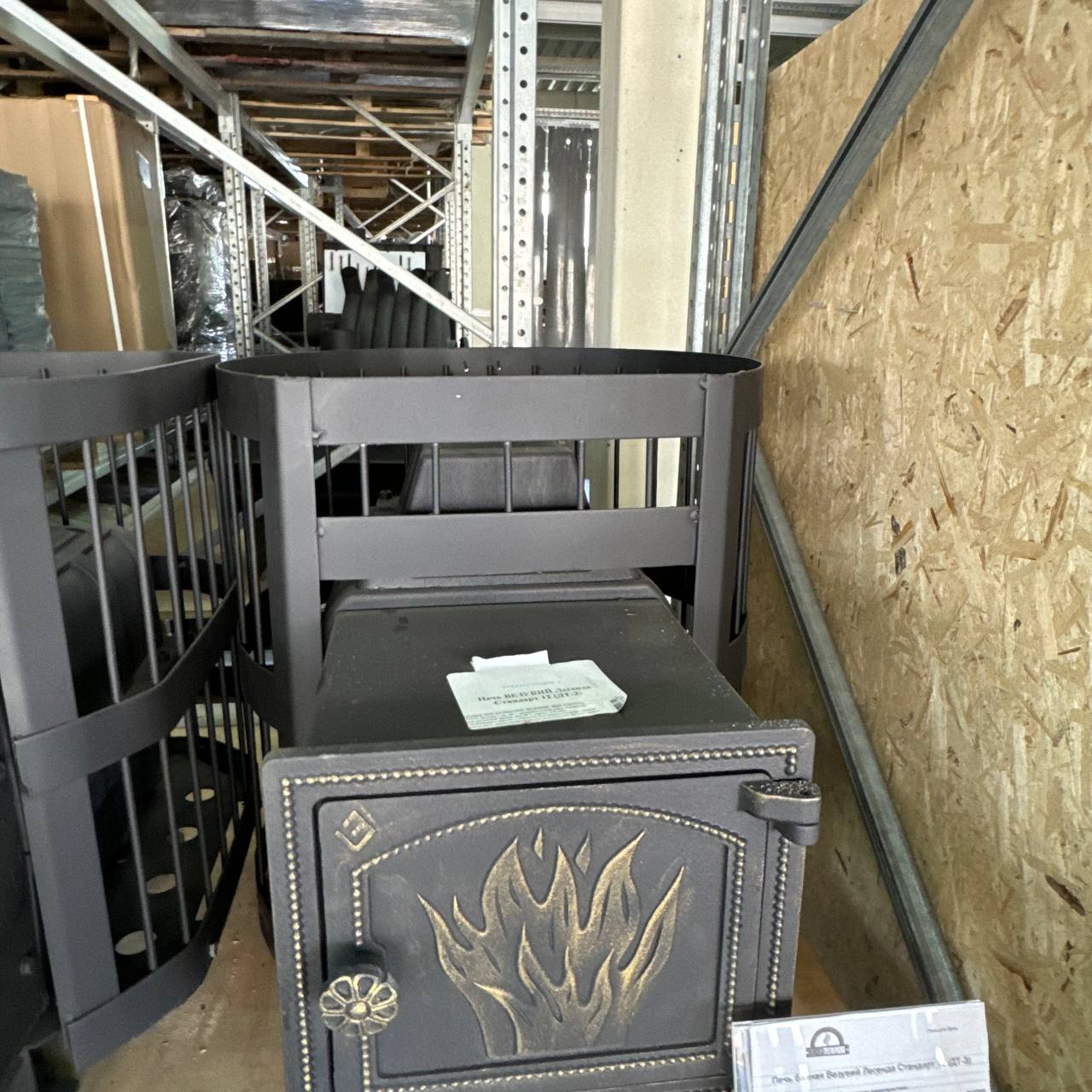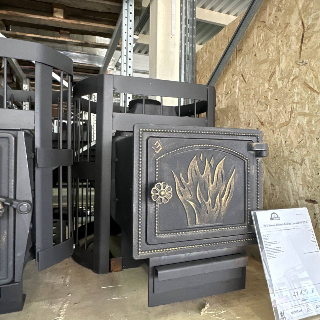 Банная чугунная печь Легенда Стандарт 12 (Дт-3) укомплектована чугунной дверцей Везувий Дт-3.  Конвекционно-вентилируемый кожух "Стандарт" изготовлен из металлического прутка диаметром 6мм покрашенной черной термостойкой краской.