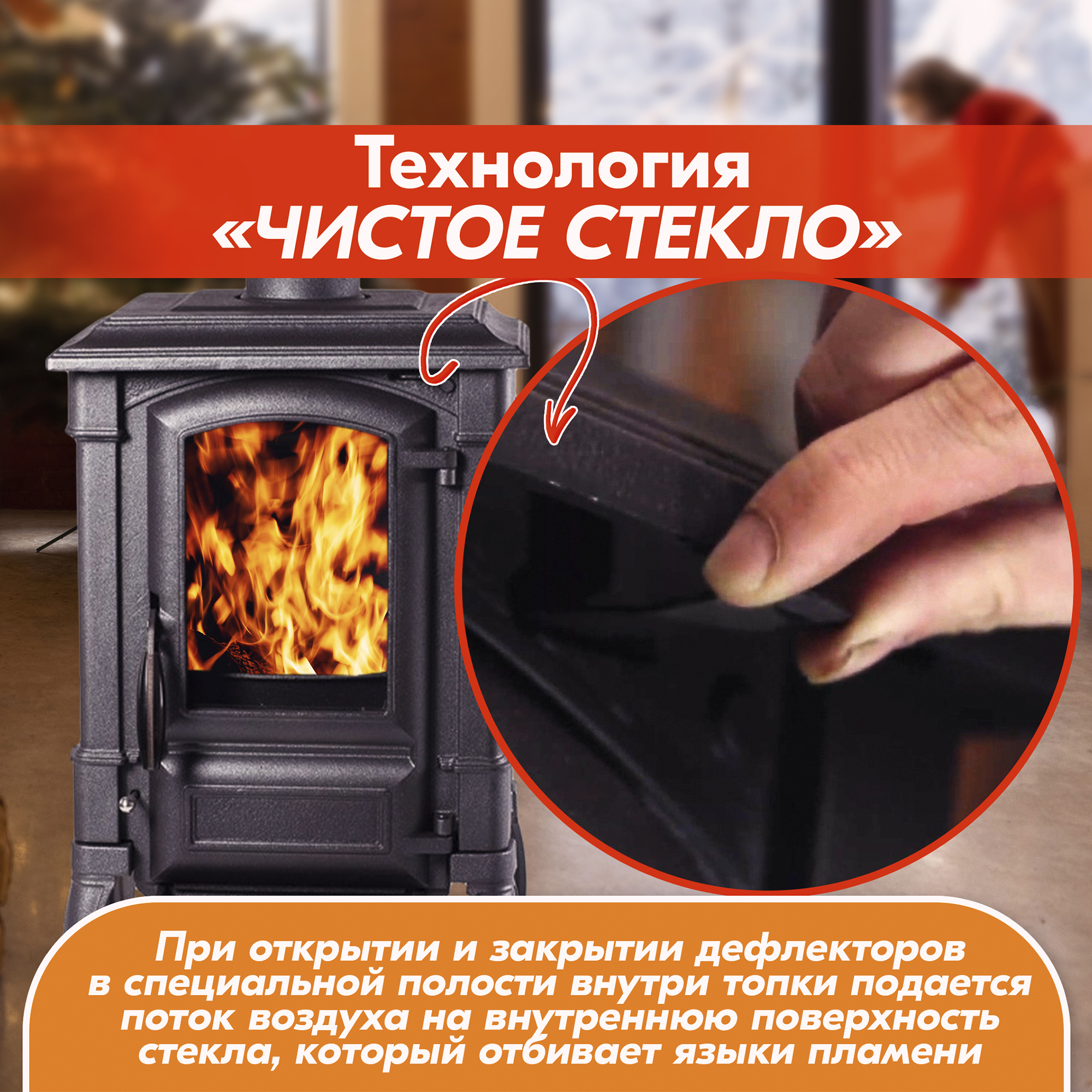 После достижения в помещении комфортной температуры рекомендуем переводить печь-камин в режим длительного горения, регулируя и уменьшая подачу воздуха.