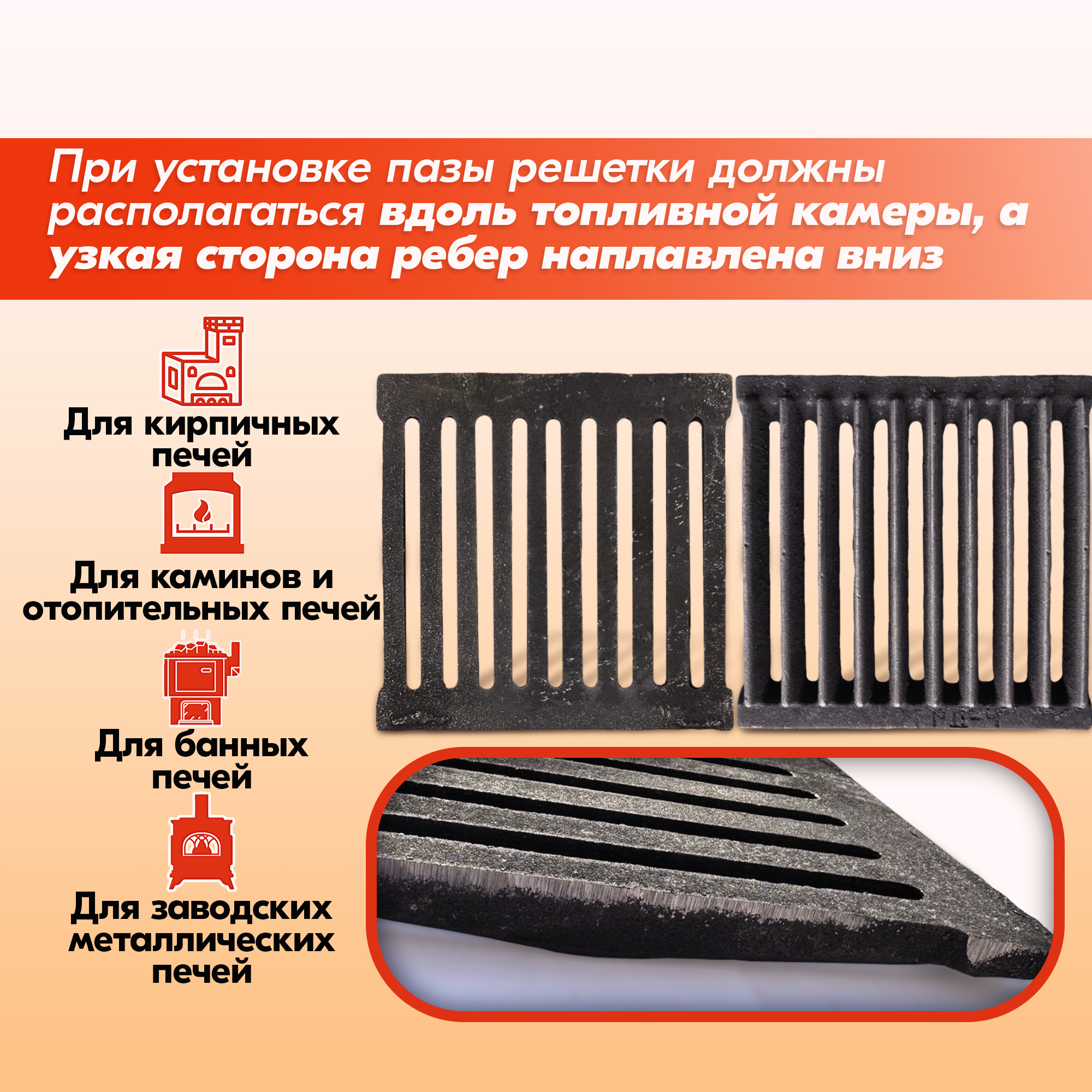 За счет этого чугунная колосниковая решетка для печи и котла отличается долгим сроком эксплуатации.