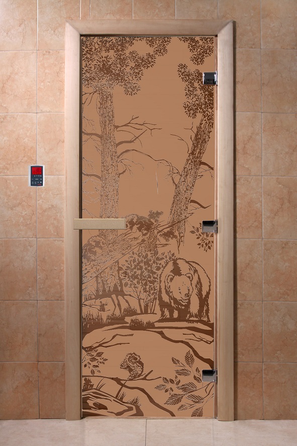 Дверь для сауны "Мишки в лесу" (матовая) 190х70 в Нижнем Тагиле | Доставка по России